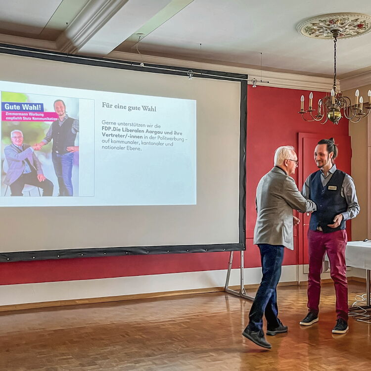 Nachdem die Zimmermann Werbung AG die FDP Aargau über viele Jahre mit Werbedienstleistungen unterstützte, trat Urs Zimmermann Anfang 2025 in den wohlverdienten Ruhestand. Wir danken Urs für die Übergabe und wünschen ihm für die Zukunft alles Gute.