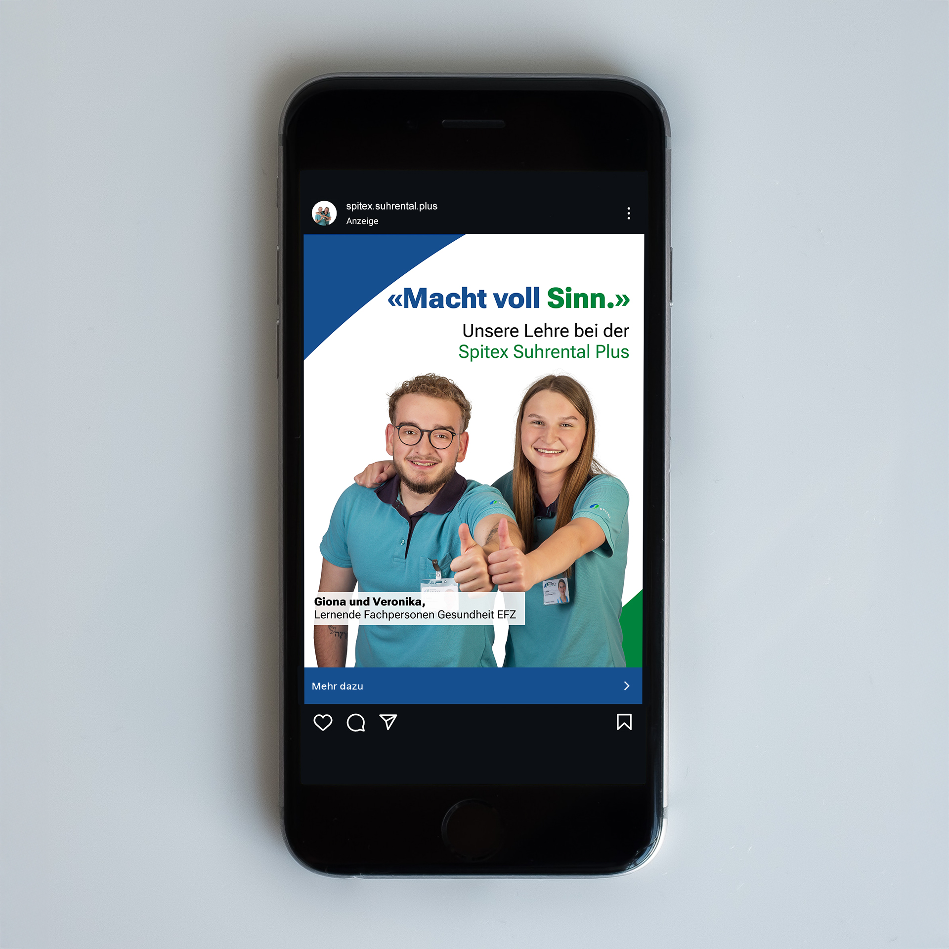 Mit einer klaren Kommunikationsstrategie und einem kreativen Konzept gelang es, beide Zielgruppen gezielt anzusprechen und gleichzeitig das Markenprofil der Spitex Suhrental Plus zu stärken.