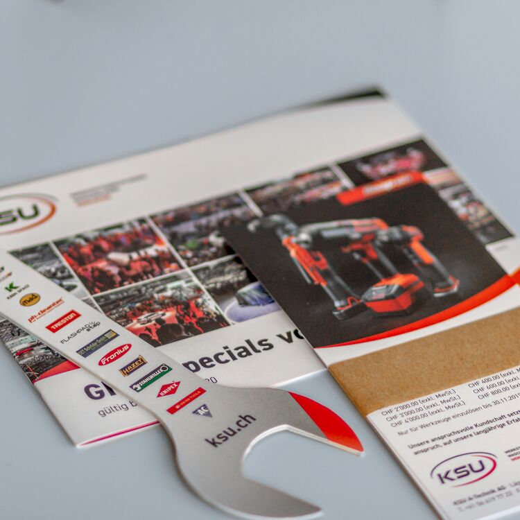 Ein attraktiver Auftritt auf hohem Niveau, die Bindung mit den eigenen Kunden und ein innovatives Marketing. Das zeichnet die KSU A-Technik AG in Wohlen aus. Stutz Kommunikation unterstützt in vielen Bereichen, hier beispielsweise bei der Gestaltung und Entwicklung einiger Werbemittel.